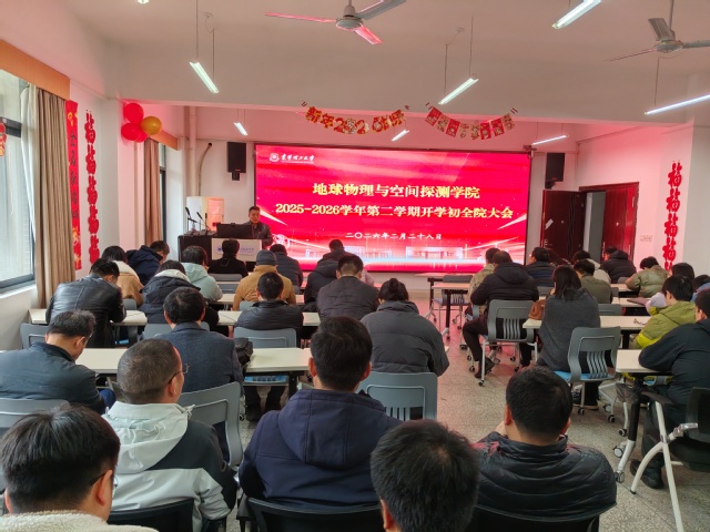 为确保新学期各项工作开好局、起好步,2月28日下午,地球物理与空间探测学院在地学楼A509会议室召开2026年春季学期开学工作布置会。会议由院长李红星主持,全院教职工参会。